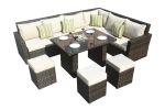 -Direct Wicker's outdoor patio furniture sets includes 2 side sofa 1 middle sofa 1 corner sofa 1 coffee table 3 ottoman.