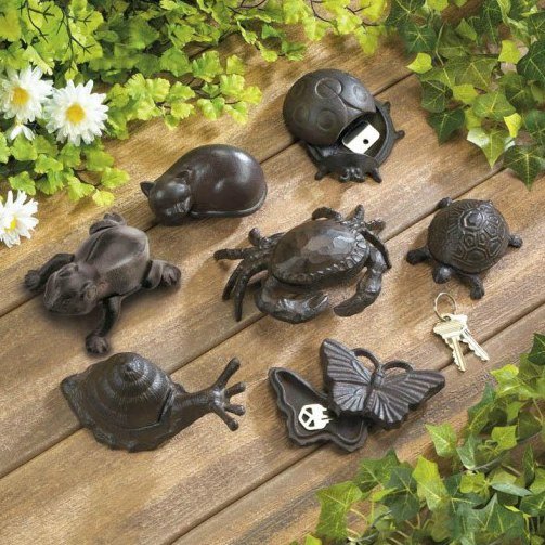 Who would ever know that this cute little ladybug is really a hiding place for a spare key? Tuck her right under a hedge or even right on the porch. Weight 0.8 pound. 4 x 4 x 1.75 inches tall. Cast iron.