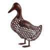 Charming duck sculpture is made with a geometric-style metal frame and can be used indoors or outdoors. Pattern resembles chicken wire to add a touch of country whimsy to any space! 1.54 pounds. 13 x 4.75 x 14.5 inches tall. Iron.
